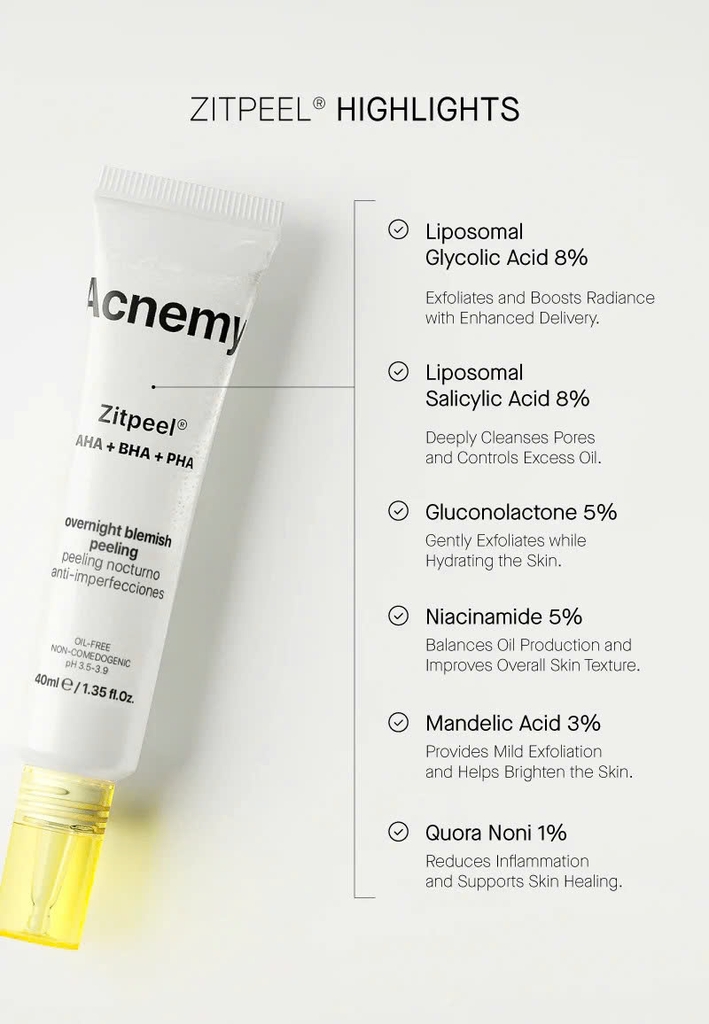 ACNEMY ZITPEEL® AHA+BHA+PHA: Peel Da Hiệu Quả Cho Làn Da Dễ Nổi Mụn