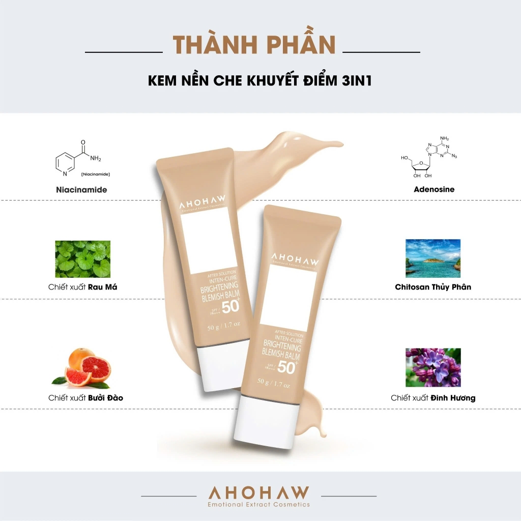 THÀNH PHẦN VÀ CÔNG DỤNG CỦA KEM NỀN CHE KHUYẾT ĐIỂM 3 IN 1 AHOHWA BRIGHTENING BALMISH BALM SPF 50+/ PA+++
