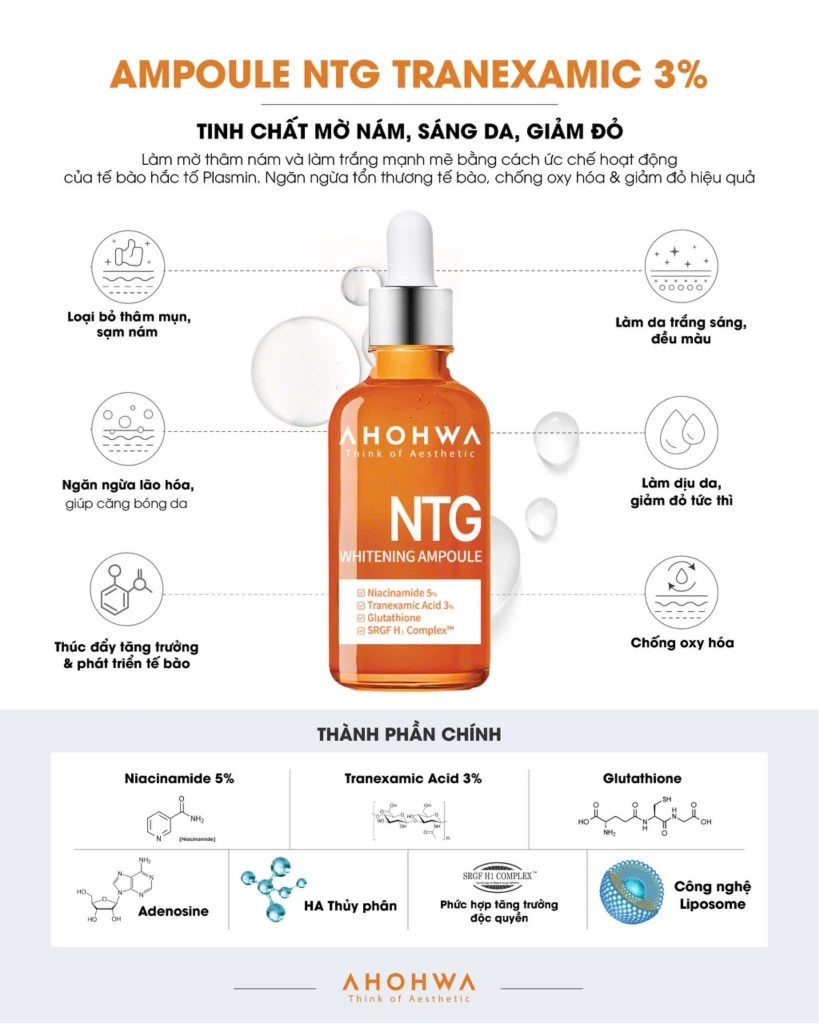 AHOHWA NTG WHITENING AMPOULE: Tinh Chất Điều Trị Nám, Giảm Đỏ, Dưỡng Trắng, Kiểm Soát Tăng Sắc Tố Hiệu Quả