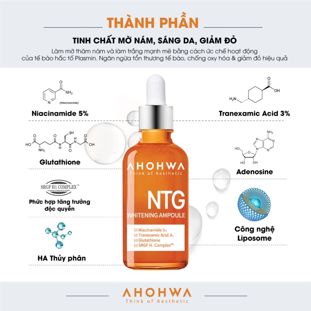 THÀNH PHẦN VÀ CÔNG DỤNG CỦA TINH CHẤT AHOHWA NTG WHITENING AMPOULE