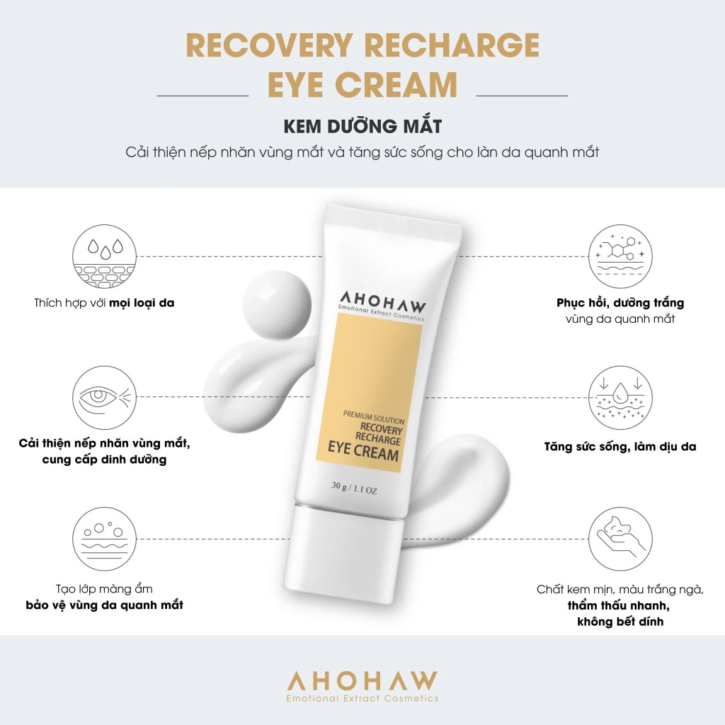 AHOHWA RECOVERY RECHARGE EYE CREAM: Kem Cấp Ẩm & Cải Thiện Nếp Nhăn Vùng Mắt Hiệu Quả