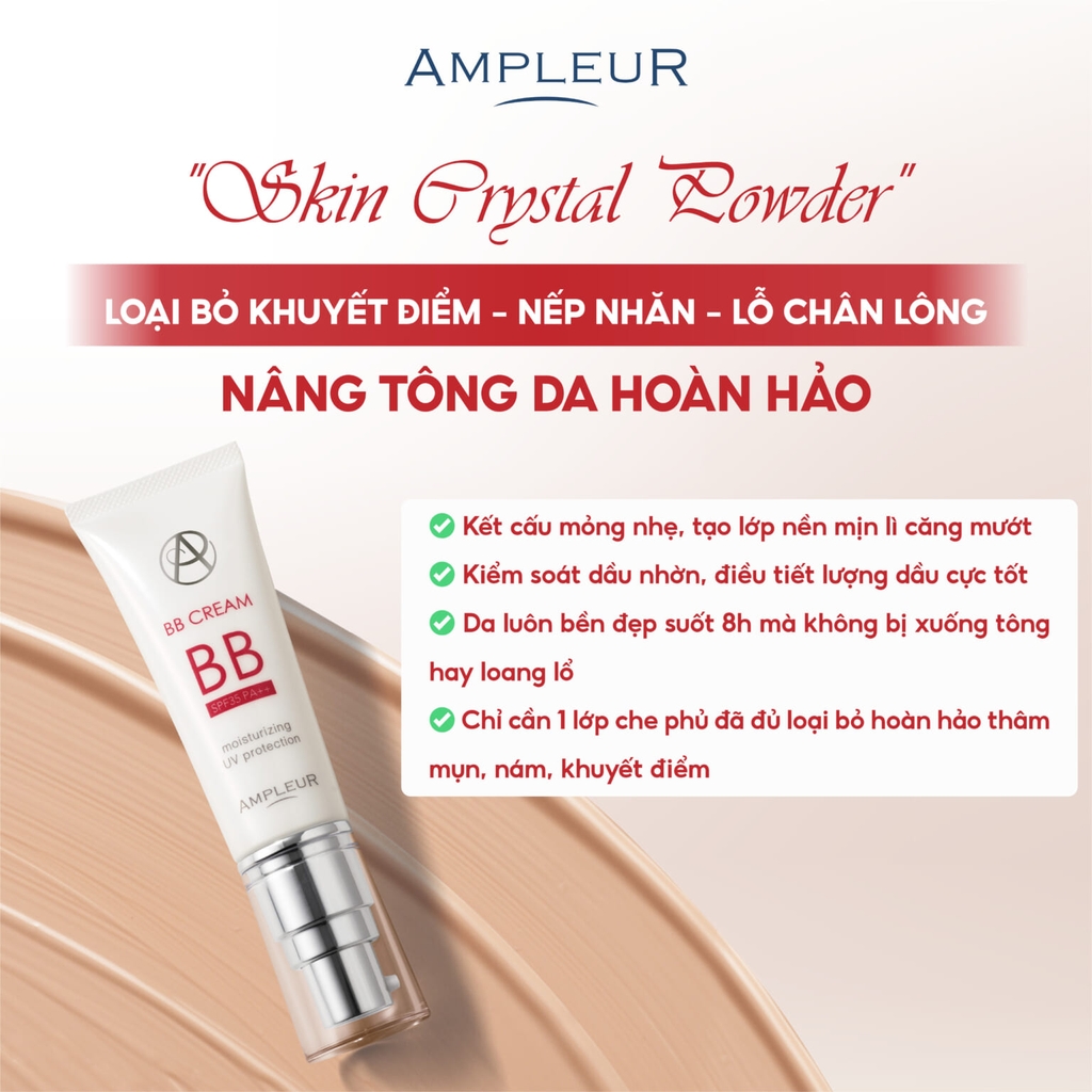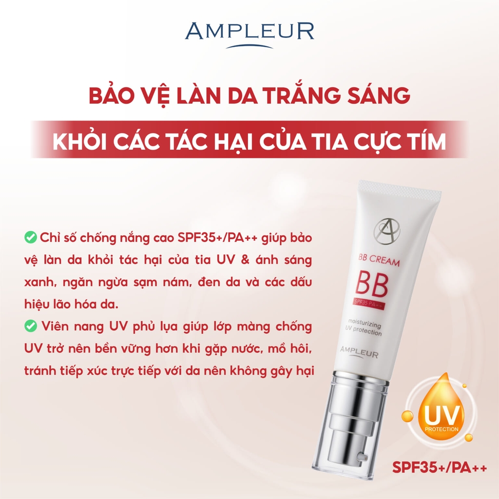 Bạn mong muốn sở hữu lớp nền mỏng nhẹ, tự nhiên mà vẫn che phủ khuyết điểm hoàn hảo, đồng thời bảo vệ và dưỡng da hiệu quả? AMPLEUR BB CREAM SPF35 PA++ chính là "vũ khí bí mật" dành cho bạn! Kem BB đến từ Nhật Bản này không chỉ là sản phẩm trang điểm mà còn là "chuyên gia" chăm sóc da, mang đến cho bạn làn da mịn màng, rạng rỡ và khỏe mạnh.