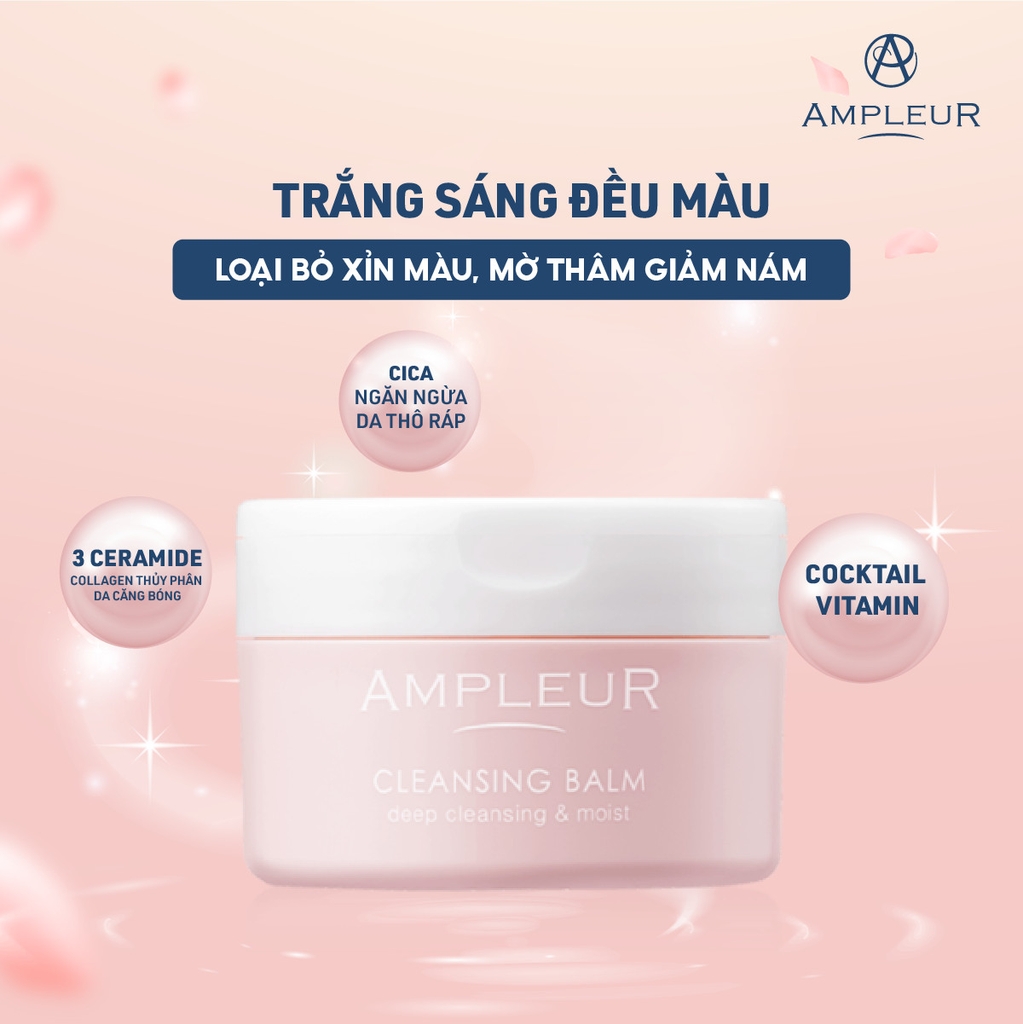 AMPLEUR CLEANSING BALM là sáp tẩy trang với công thức "tan chảy" đặc biệt, khi tiếp xúc với da sẽ chuyển hóa thành dạng dầu, nhẹ nhàng làm sạch lớp trang điểm, bụi bẩn, bã nhờn tận sâu lỗ chân lông. Sản phẩm được nghiên cứu và phát triển bởi thương hiệu dược mỹ phẩm Ampleur Nhật Bản, nổi tiếng với các sản phẩm chăm sóc da an toàn và hiệu quả.