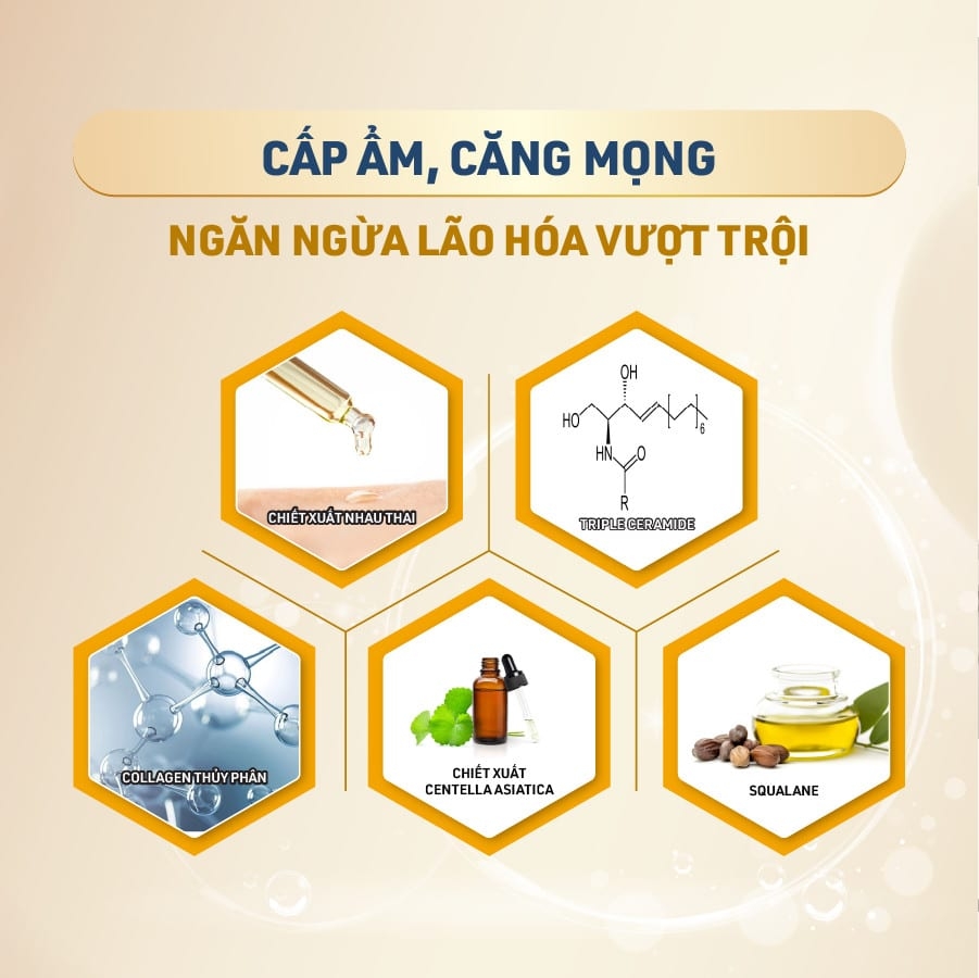 Chiết xuất nhau thai: Hỗ trợ chống oxy hóa và làm chậm quá trình lão hóa da, giúp làm đẹp da.