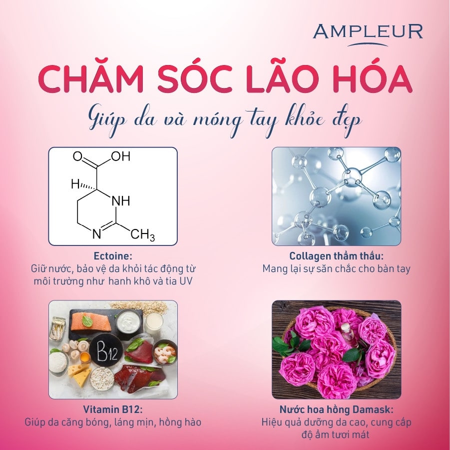 Chống lão hóa: Ngăn ngừa các dấu hiệu lão hóa da tay như nếp nhăn, chảy xệ, khô ráp.