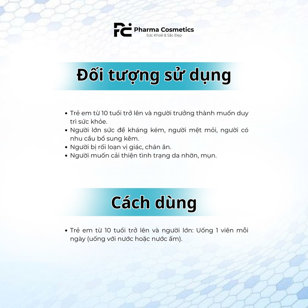 ĐỐI TƯỢNG SỬ DỤNG CỦA VIÊN UỐNG BỔ SUNG KẼM BIOCYTE ZN ZINC LIPOSOMAL