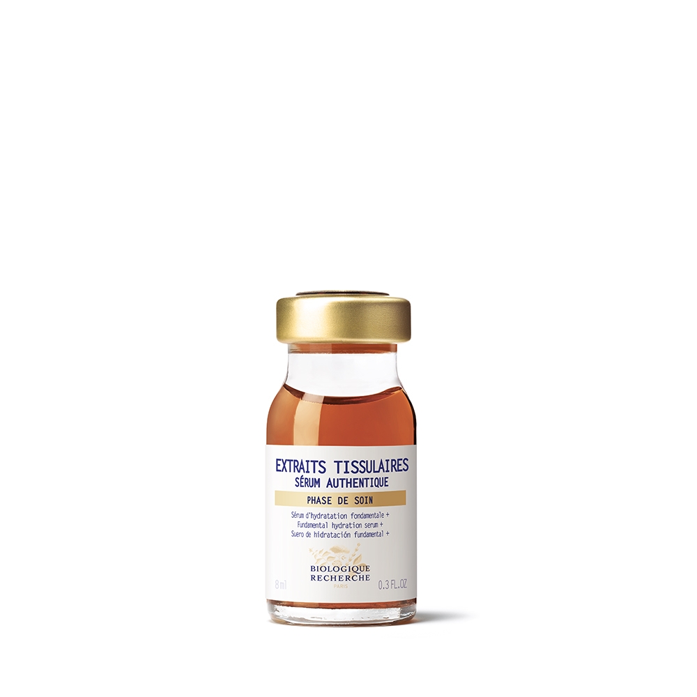 Sau khi làm sạch da và sử dụng lotion P50, lấy một vài giọt huyết thanh Extraits Tissulaires ra lòng bàn tay.