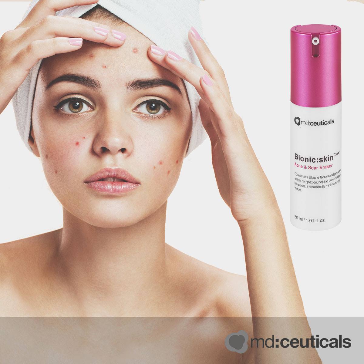 Bionic: skinClear Acne & Scar Eraser ngoài việc điều trị hiệu quả mụn trứng cá, giải quyết các vấn đề về da như sẹo sau mụn, thâm sẹo, mẩn đỏ và tông màu da không đồng nhất. Đặc biệt phục hồi độ ẩm, độ sáng và độ mịn màng của da. Axit Tranexamic làm dịu các sắc tố tăng xuất hiện do mụn trứng cá và sẹo. Một phức hợp tái tạo và dưỡng ẩm mạnh mẽ với Vitamin A và E, Allantoin và Glycerin giúp tăng tốc độ chữa lành vết thương, cải thiện độ ẩm của da, làm mờ và ngăn ngừa hình thành nếp nhăn.