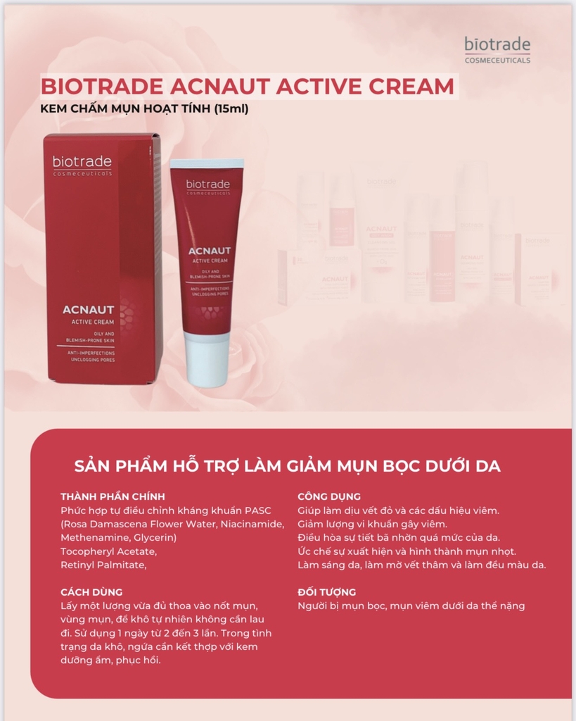 Đừng để mụn làm phiền bạn thêm nữa. Hãy để BIOTRADE ACNAUT ACTIVE CREAM giúp bạn lấy lại làn da sạch mụn, mịn màng và tự tin hơn mỗi ngày!
