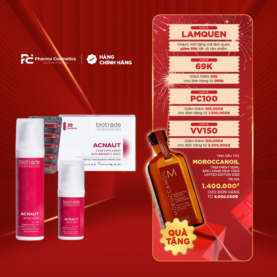 BỘ BA BIOTRADE ACNAUT ĐẶC TRỊ MỤN NỘI TIẾT, MỤN MỦ, MỤN XƯNG VIÊM, MỤN ẨN BÍT TẮC