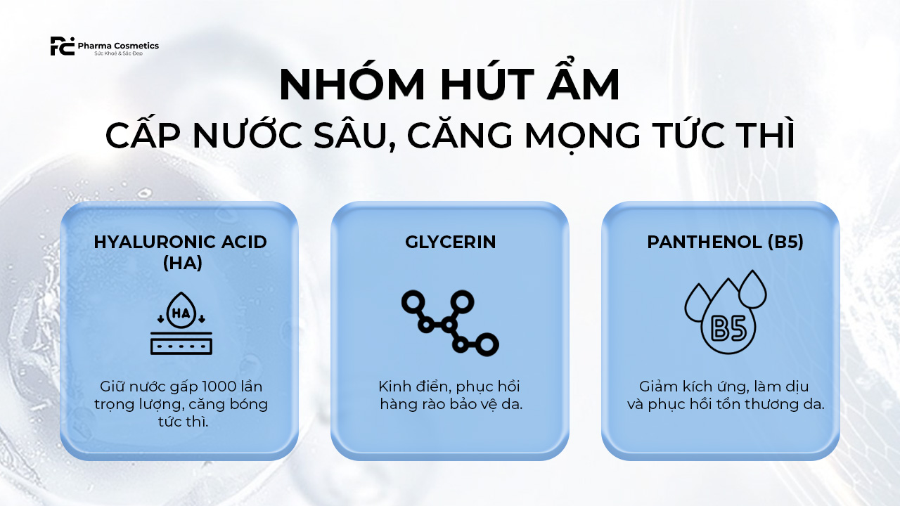 I. NHÓM THÀNH PHẦN HÚT ẨM (HUMECTANTS): CẤP NƯỚC SÂU