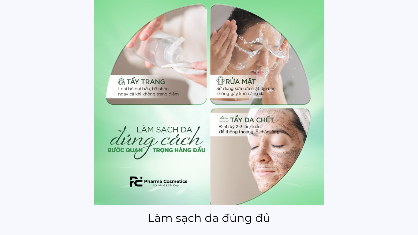 Rửa mặt: Sử dụng sữa rửa mặt dịu nhẹ, phù hợp với loại da. Massage nhẹ nhàng để làm sạch sâu lỗ chân lông.