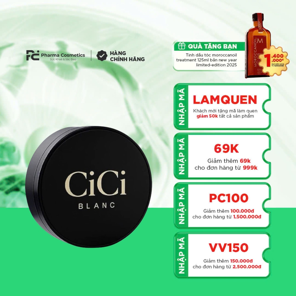 CICI BLANC CUSHION là phấn nước thế hệ mới, được mệnh danh là "Cushion sinh học" với công thức 3 trong 1 đột phá: Trang điểm – Dưỡng da – Tái tạo. Sản phẩm không chỉ mang lại lớp nền mỏng nhẹ, che phủ tự nhiên và bền màu suốt 24 giờ mà còn được thiết kế như một giải pháp dưỡng da phục hồi chuyên sâu. Với chỉ số SPF50+ PA++++ chống nắng toàn diện, CICI BLANC là lựa chọn lý tưởng cho làn da đang treatment, da nhạy cảm hay tổn thương, giúp làn da khỏe dần lên theo thời gian.