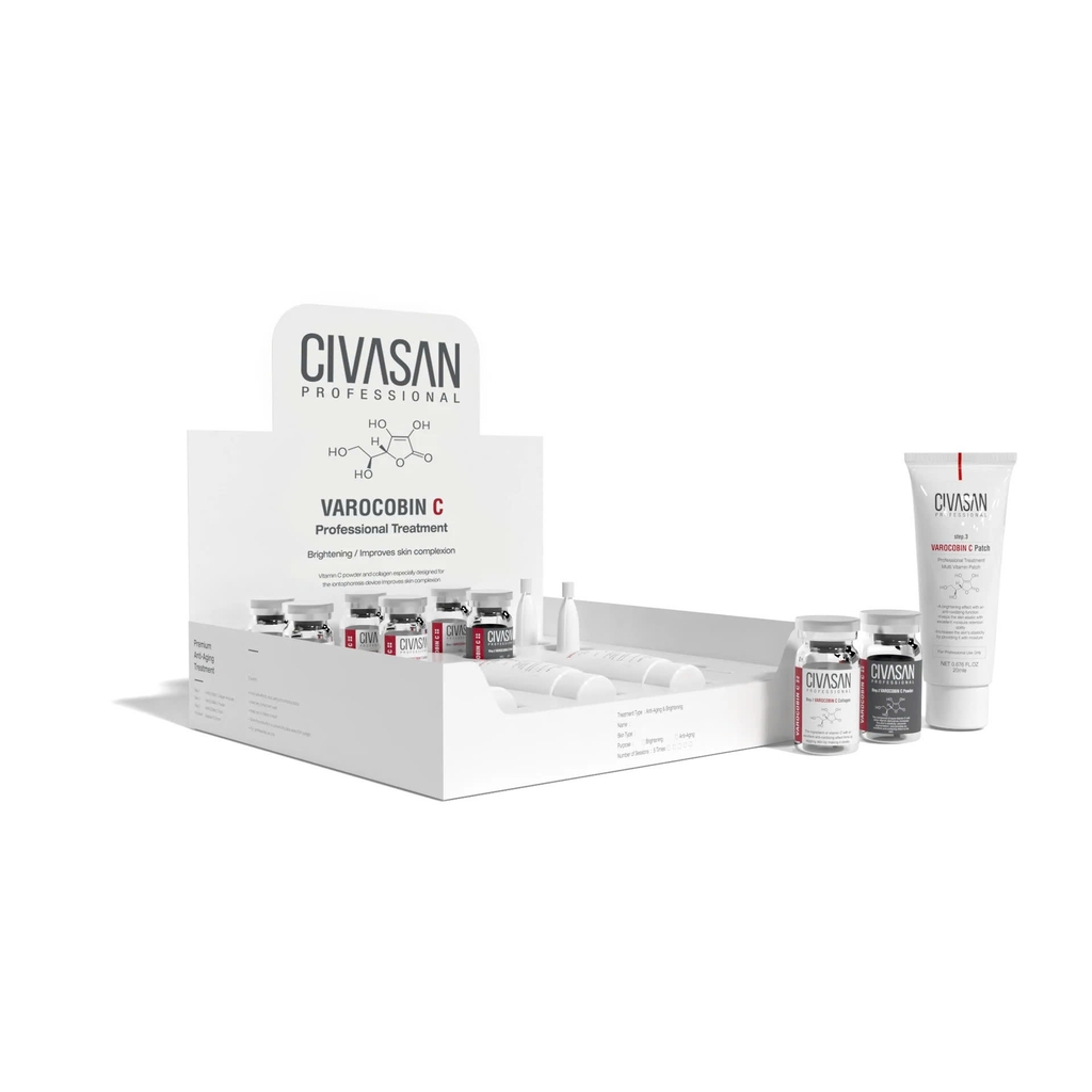 Civasan Varocobin C Professional là chương trình chăm sóc da chuyên sâu kéo dài 24 giờ, giúp duy trì hàm lượng Vitamin C tối ưu trên da. Với sự kết hợp giữa bột Vitamin C nguyên chất (L-ascorbic acid) và tinh chất Collagen, bộ sản phẩm không chỉ làm sáng những vùng da xỉn màu mà còn cải thiện cấu trúc đàn hồi, đẩy lùi dấu hiệu lão hóa, mang lại làn da căng bóng và đều màu như vừa được chăm sóc tại Spa chuyên nghiệp.