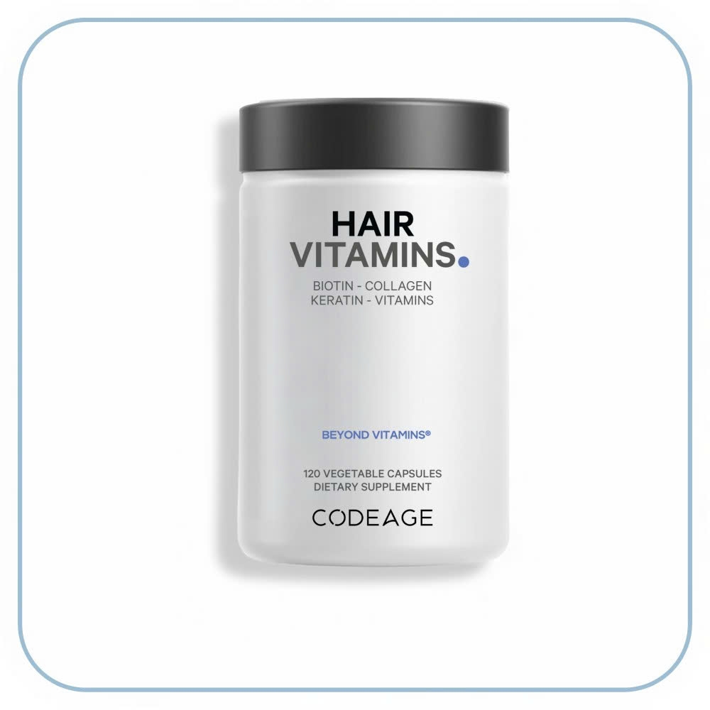 Codeage Hair Vitamins là dòng thực phẩm bảo vệ sức khỏe cao cấp đến từ thương hiệu Codeage (Mỹ). Sản phẩm sở hữu công thức đột phá kết hợp giữa Vitamin, khoáng chất thiết yếu, Keratin, cùng hệ lợi khuẩn và enzyme tiêu hóa. Đây được coi là giải pháp "tất cả trong một" giúp nuôi dưỡng nang tóc từ sâu bên trong, kích thích mọc tóc và cải thiện sức khỏe da đầu toàn diện cho cả nam và nữ.