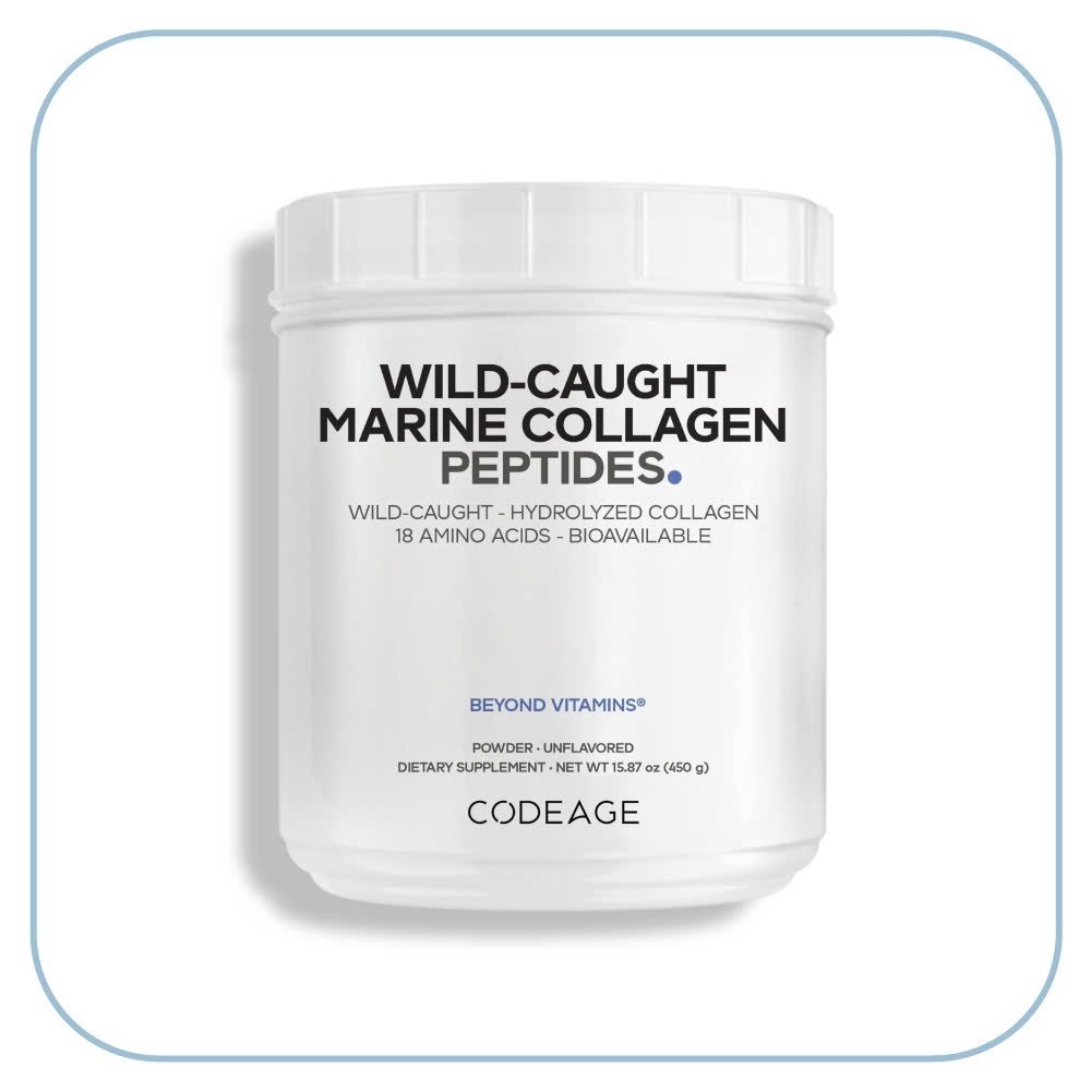 Codeage Marine Collagen Peptides là dòng thực phẩm bảo vệ sức khỏe cao cấp đến từ thương hiệu Codeage (Mỹ). Với nguồn nguyên liệu 100% từ cá tuyết trắng đánh bắt tự nhiên tại vùng nước lạnh Bắc Mỹ, sản phẩm cung cấp hàm lượng collagen tinh khiết lên đến 9000mg mỗi khẩu phần, giúp nuôi dưỡng làn da căng mịn, trẻ hóa từ sâu bên trong mà không gây nóng trong hay thay đổi nội tiết tố.