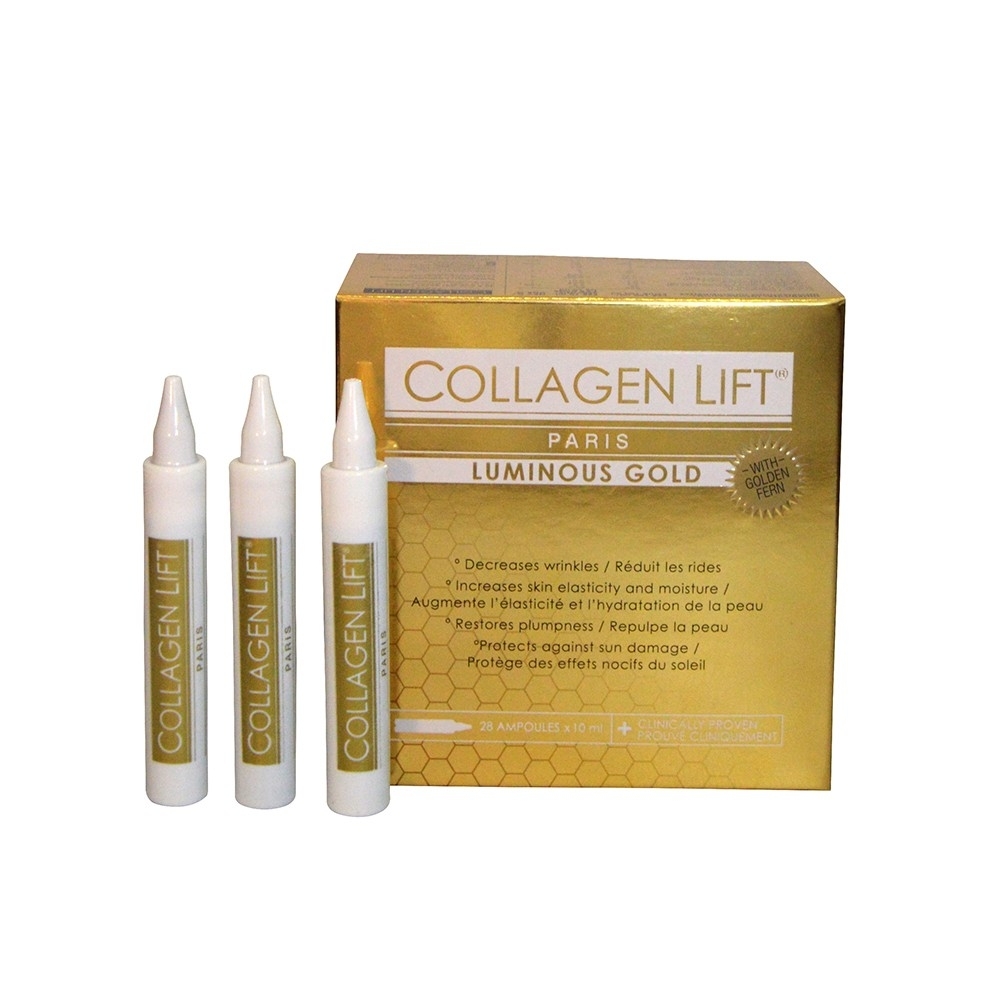 Collagen Lift® Paris, LUMINOUS GOLD giúp cải thiện các sắc tố gây ra bởi ánh nắng mặt trời và nám da cũng như các dấu hiệu lão hóa biểu hiện trên bề mặt. Được sản xuất tại Pháp, LUMINOUS GOLD là “tiêu chuẩn vàng” của Collagen Lift’s®, một sản phẩm cao cấp giúp bảo vệ, nuôi dưỡng, trẻ hóa và phục hồi làn da tươi trẻ