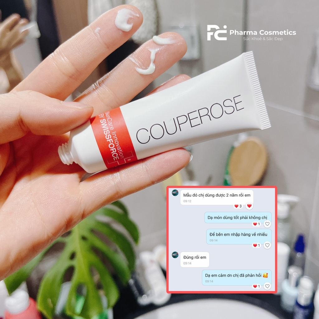 SWISSFORCE® COUPEROSE là kem dưỡng chuyên biệt dành cho da bị mẩn đỏ, giãn mao mạch, đến từ thương hiệu dược mỹ phẩm cao cấp Swissforce® của Thụy Sỹ. Với công thức tiên tiến kết hợp các thành phần tự nhiên, sản phẩm giúp làm dịu da kích ứng, giảm mẩn đỏ, củng cố thành mạch máu, mang lại làn da khỏe mạnh, đều màu và tươi sáng.