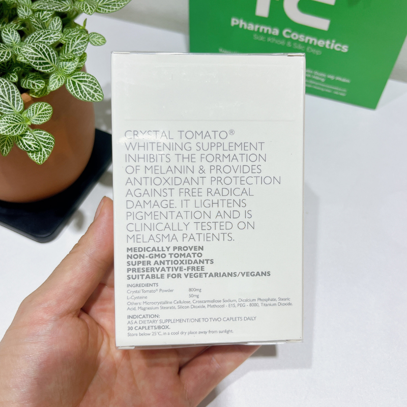 CRYSTAL TOMATO WHITENING SUPPLEMENT / VIÊN UỐNG CÀ CHUA TRẮNG SÁNG DA VÀ MỜ THÂM NÁM (THUẦN CHAY)