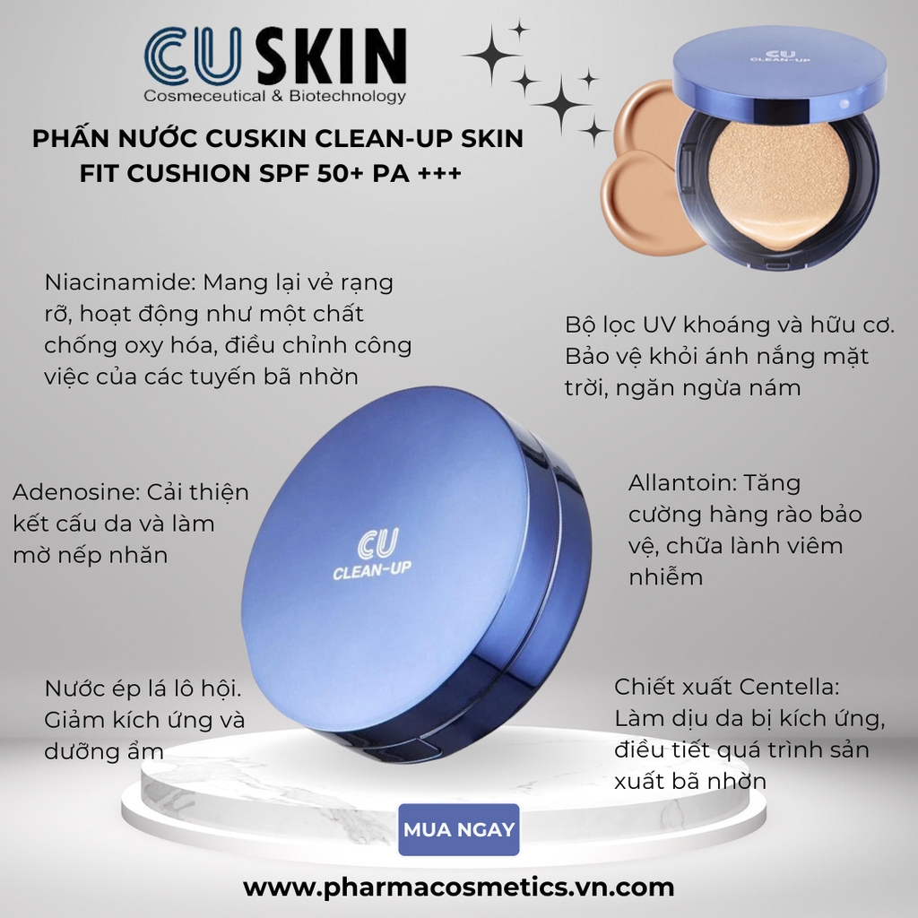 Phấn Nước CUSKIN CLEAN-UP SKINFIT CUSHION SPF 50+ PA+++ (15g + 15g) - Làn Da Hoàn Hảo Không Tì Vết