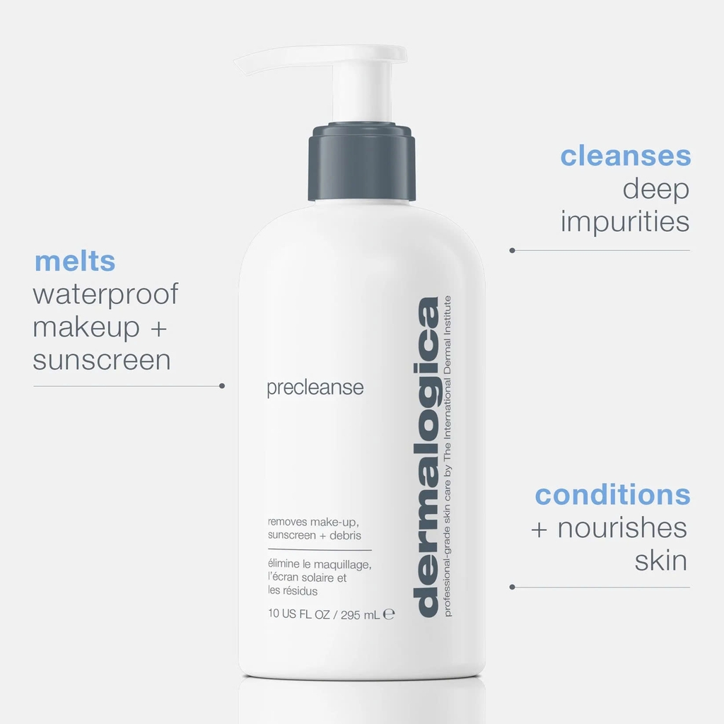 DERMALOGICA PRECLEANSE CLEANSING OIL là dầu tẩy trang chuyên sâu, được thiết kế để làm tan chảy lớp trang điểm và tạp chất trên da. Đây là bước đầu tiên trong quy trình Double Cleanse (làm sạch kép), giúp loại bỏ triệt để dầu thừa, kem chống nắng, lớp trang điểm không thấm nước, các chất ô nhiễm từ môi trường và cặn bẩn tích tụ trên da suốt cả ngày. Precleanse Cleansing Oil mang lại làn da sạch sâu và khỏe mạnh, phù hợp cho mọi loại da, kể cả da dầu.