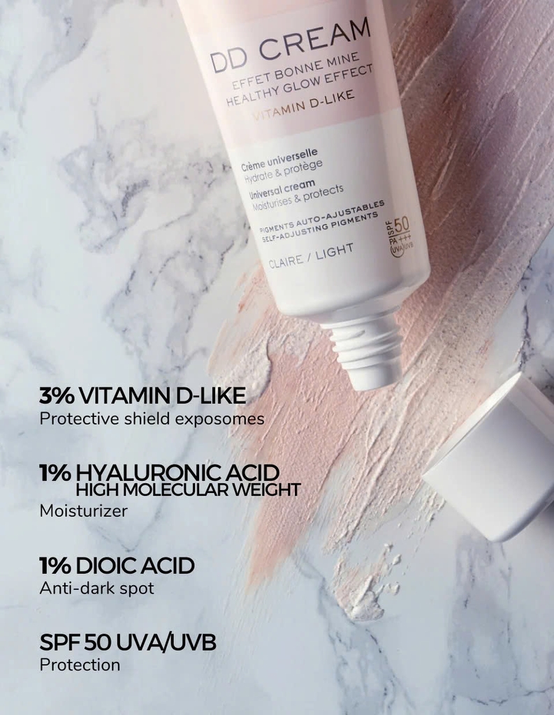 DermEden DD Cream Universal Cream Light SPF50 là kem dưỡng da ban ngày đa chức năng, kết hợp hoàn hảo giữa khả năng chống nắng, dưỡng da và hiệu ứng trang điểm nhẹ. Với màng lọc chống nắng mạnh mẽ SPF 50 PA+++, sản phẩm bảo vệ da toàn diện khỏi các tác nhân gây hại từ môi trường như tia UVA/UVB và ánh sáng xanh. Công thức chứa các hạt vi sắc tố (micro-pigments) có khả năng tự điều chỉnh, giúp làm đều màu và mang lại lớp nền rạng rỡ, tự nhiên. Đặc biệt, kem DD này còn cung cấp các dưỡng chất quan trọng như Hyaluronic Acid và Vederine, không chỉ cấp ẩm tức thì mà còn hỗ trợ quá trình tái tạo tế bào, mang lại làn da căng mọng và tươi trẻ hơn.