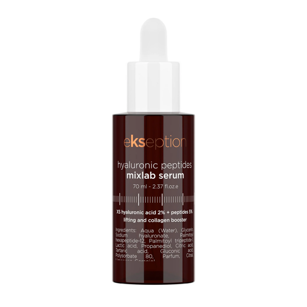 EKSEPTION HYALURONIC PEPTIDES MIXLAB SERUM là tinh chất dưỡng ẩm và giảm nếp nhăn chuyên sâu, có nguồn gốc từ thương hiệu dược mỹ phẩm EKSEPTION danh tiếng. Sản phẩm sử dụng công nghệ Mixlab tiên tiến, cho phép kết hợp các thành phần hoạt chất một cách tối ưu, mang lại hiệu quả vượt trội.