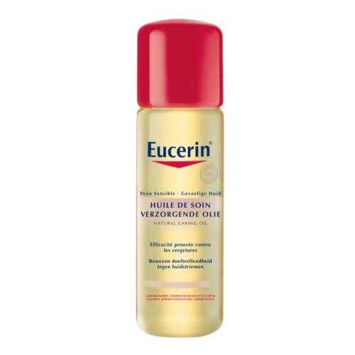 - Eucerin Natural Caring Oil được phát triển dành riêng cho nhu cầu chăm sóc đặc biệt của da khô và da nhạy cảm, ngay cả trong thời gian mang thai. Với 100% dầu tự nhiên, thường xuyên sử dụng dầu để massage sẽ giúp lưu thông máu, tăng cường độ đàn hồi của da và làm giảm sự xuất hiện của các vết rạn da cho làn da nhạy cảm, ngay trong giai đoạn mang thai.