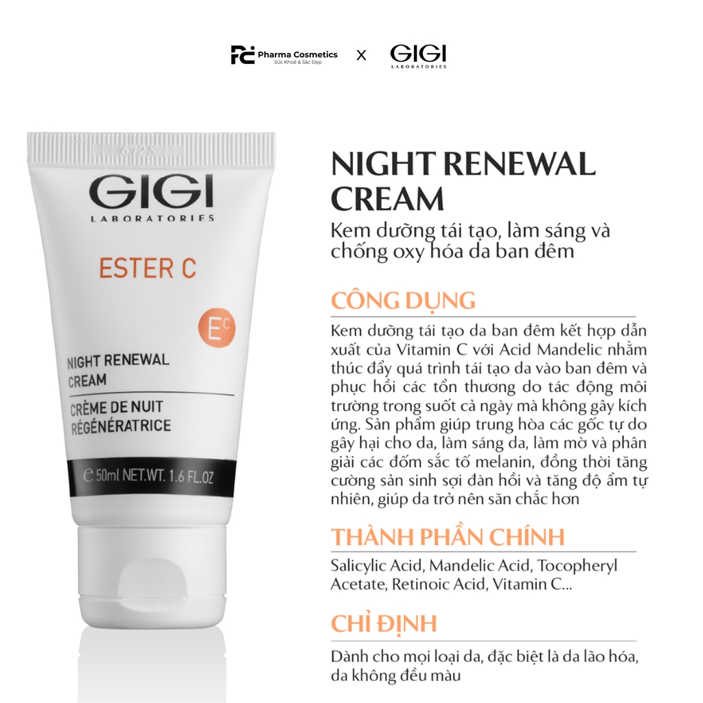 ","template_layout":null,"available":true,"tags":["PHARMACOSMETICS","KEM DƯỠNG CHO MỌI LOẠI DA","CHỐNG LÃO HÓA DA","DƯỠNG SÁNG DA","TÁI TẠO DA NHẠY CẢM","SALICYLIC ACID","MANDELIC ACID","ESTER C","CHĂM SÓC DA BAN ĐÊM","KEM DƯỠNG BAN ĐÊM","KEM CHỐNG OXY HOÁ","KEM LÀM SÁNG DA","KEM DƯỠNG TÁI TẠO DA","GIGI ESTER C NIGHT RENEWAL CREAM"],"price":1690000.0000,"price_min":1690000.0000,"price_max":1690000.0000,"price_varies":false,"compare_at_price":0,"compare_at_price_min":0,"compare_at_price_max":0,"compare_at_price_varies":false,"variants":[{"id":63220716,"barcode":null,"sku":"gigi38","unit":null,"title":"Default Title","options":["Default Title"],"option1":"Default Title","option2":null,"option3":null,"available":true,"taxable":true,"price":1690000.0000,"compare_at_price":null,"inventory_management":null,"inventory_policy":"deny","inventory_quantity":0,"weight_unit":"g","weight":50,"requires_shipping":true,"image":{"src":"https://bizweb.dktcdn.net/100/415/053/products/night-renewal-cream-50mlbox-ref-19072.jpg?v=1770133625180"}}],"featured_image":{"src":"https://bizweb.dktcdn.net/100/415/053/products/night-renewal-cream-50mlbox-ref-19072.jpg?v=1770133625180"},"images":[{"src":"https://bizweb.dktcdn.net/100/415/053/products/night-renewal-cream-50mlbox-ref-19072.jpg?v=1770133625180"},{"src":"https://bizweb.dktcdn.net/100/415/053/products/kho-ng-co-tie-u-de-1-10f61f27-e175-4cad-b0bd-265aa2c776fd.jpg?v=1770133625180"}],"options":["Title"],"created_on":"2022-04-11T17:47:24","modified_on":"2026-02-03T22:47:05","published_on":"2022-04-11T17:47:00"}