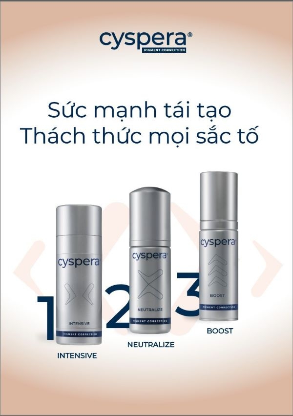 Bộ sản phẩm Cyspera Intensive Correct System - Tiêu chuẩn Vàng trong điều trị tăng sắc tố, được đông đảo các chuyên gia da liễu trên thế giới tin dùng.