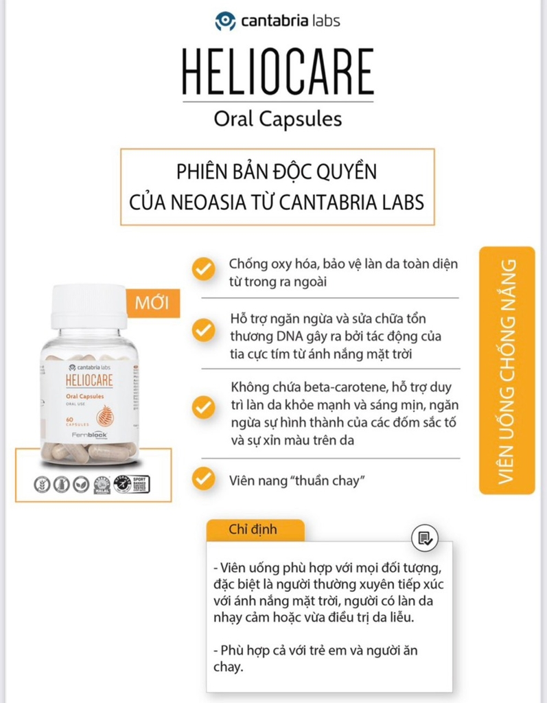 HELIOCARE ORAL CAPSULES / PHIÊN BẢN ĐỘC QUYỀN CỦA NEOASIA TỪ CANTABRIA LABS