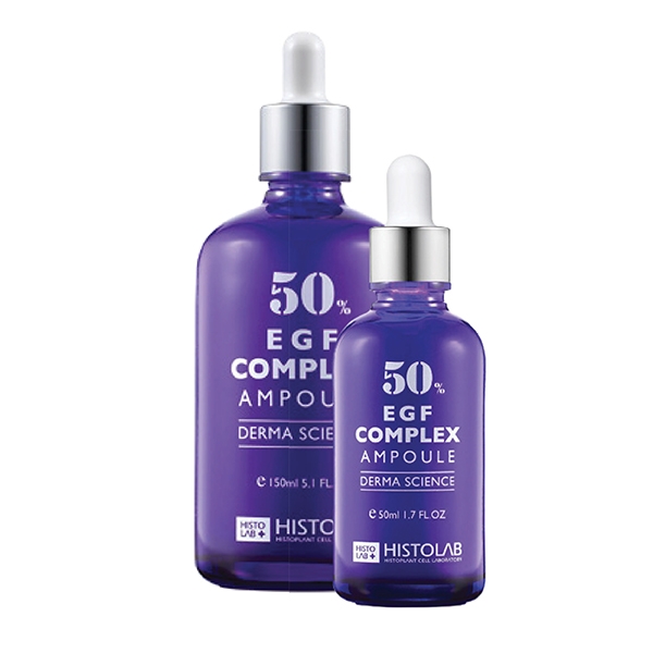 HISTOLAB 50% EGF COMPLEX AMPOULE là tinh chất cô đặc thuộc dòng dưỡng da chuyên sâu Derma Science, chứa 50% Phức hợp EGF (Epidermal Growth Factor). EGF được biết đến với khả năng kích thích sự tăng trưởng của các tế bào da, thúc đẩy quá trình hấp thụ dưỡng chất, kích thích tổng hợp Collagen và Elastin. Sản phẩm này là giải pháp toàn diện giúp làm mờ nếp nhăn, ngăn ngừa mọi dấu hiệu lão hóa, đồng thời ức chế tổng hợp sắc tố Melanin, làm mờ thâm nám. Tinh chất còn kết hợp Adenosine, SRGF H1, Trehalose, Lecithin và chiết xuất cây nhọ nồi, giúp phục hồi da, tăng độ đàn hồi, mang lại làn da mềm mại, mịn màng và căng tràn sức sống.