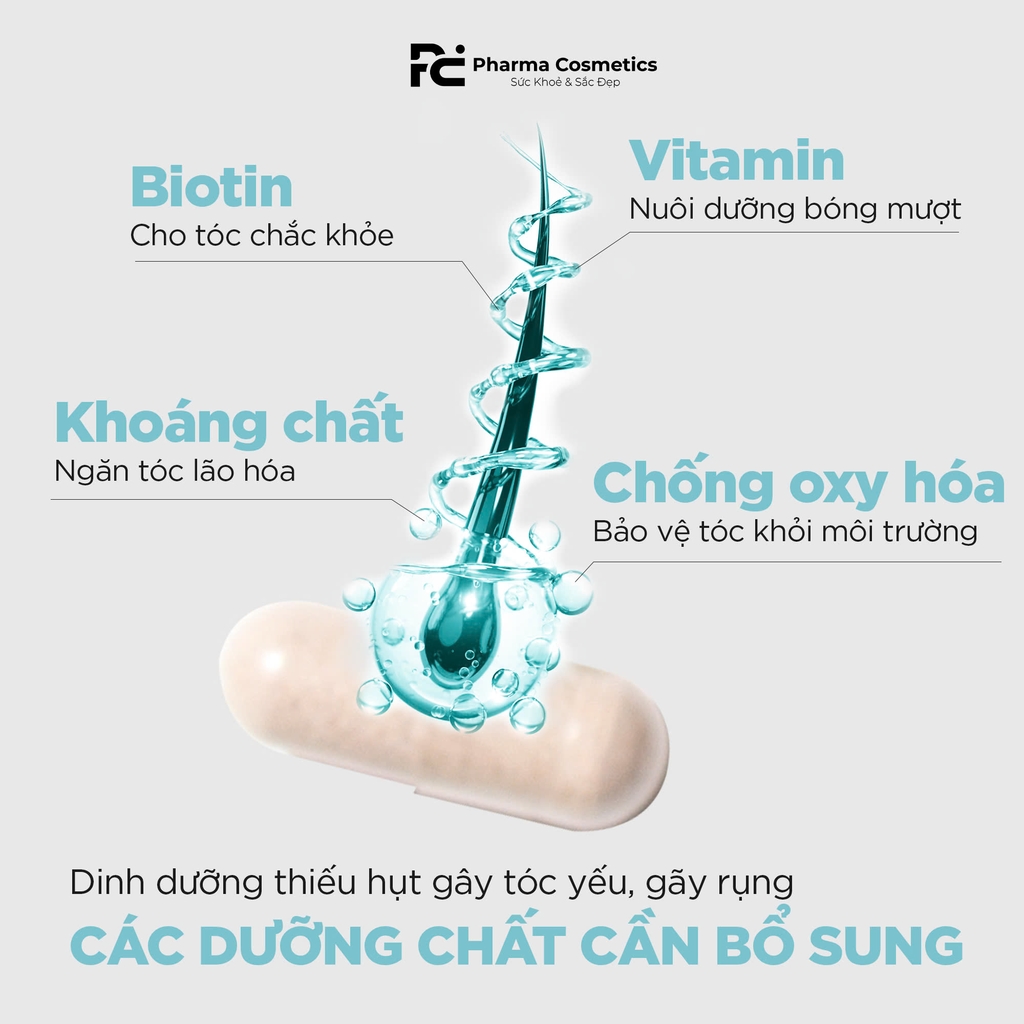 \n- Biotin: sản xuất keratin một thành phần thiết yếu của tóc