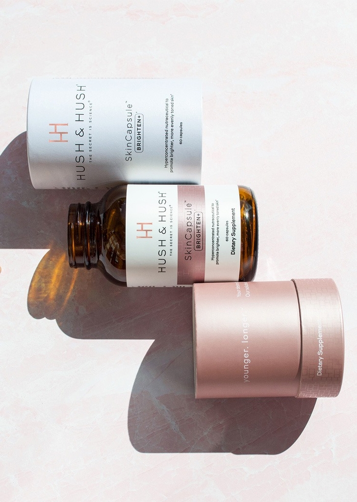 ( DATE 5/2027 ) HUSH & HUSH SkinCapsule BRIGHTEN +/ VIÊN UỐNG SÁNG DA VÀ MỜ THÂM NÁM (THUẦN CHAY)