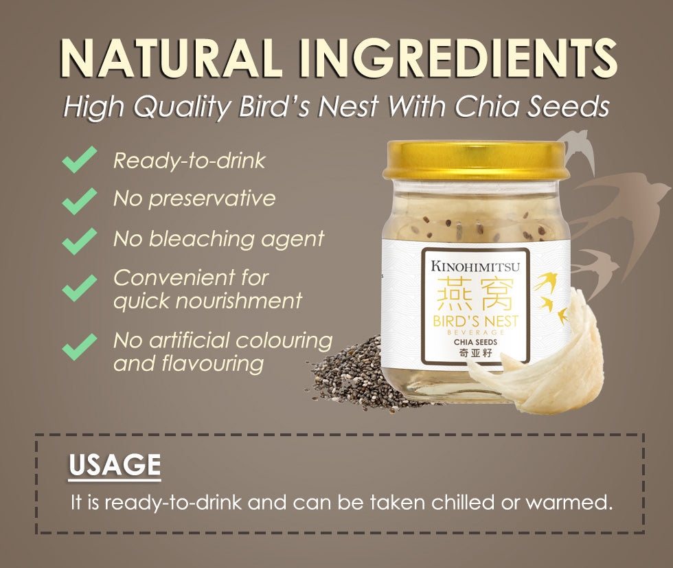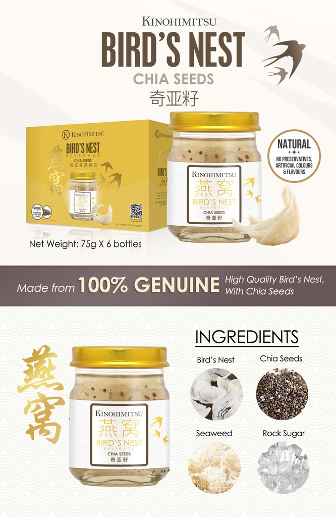 KINOHIMITSU BIRD’S NEST WITH CHIA SEED 75G / NƯỚC YẾN THƯỢNG HẠNG GIÚP HẠ ĐƯỜNG HUYẾT, GIÀU CHẤT XƠ