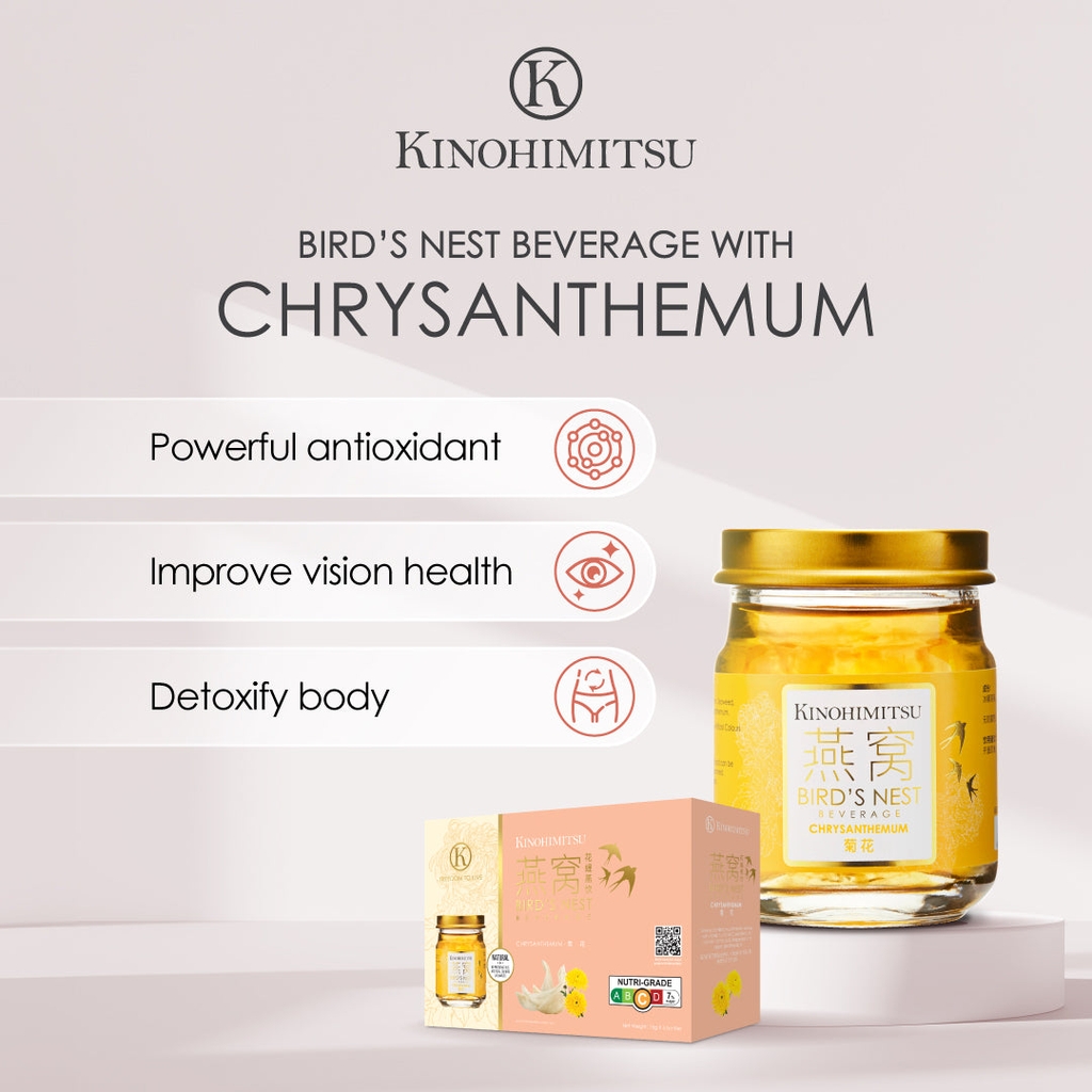 KINOHIMITSU BIRD’S NEST WITH CHRYSANTHEMUM 75G / NƯỚC YẾN THƯỢNG HẠNG CẢI THIỆN THỊ LỰC, GIẢI ĐỘC