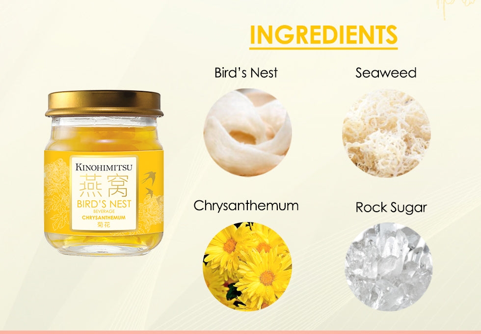 THÀNH PHẦN VÀ CÔNG DỤNG CỦA NƯỚC YẾN THƯỢNG HẠNG KINOHIMITSU BIRD’S NEST WITH CHRYSANTHEMUM 75G