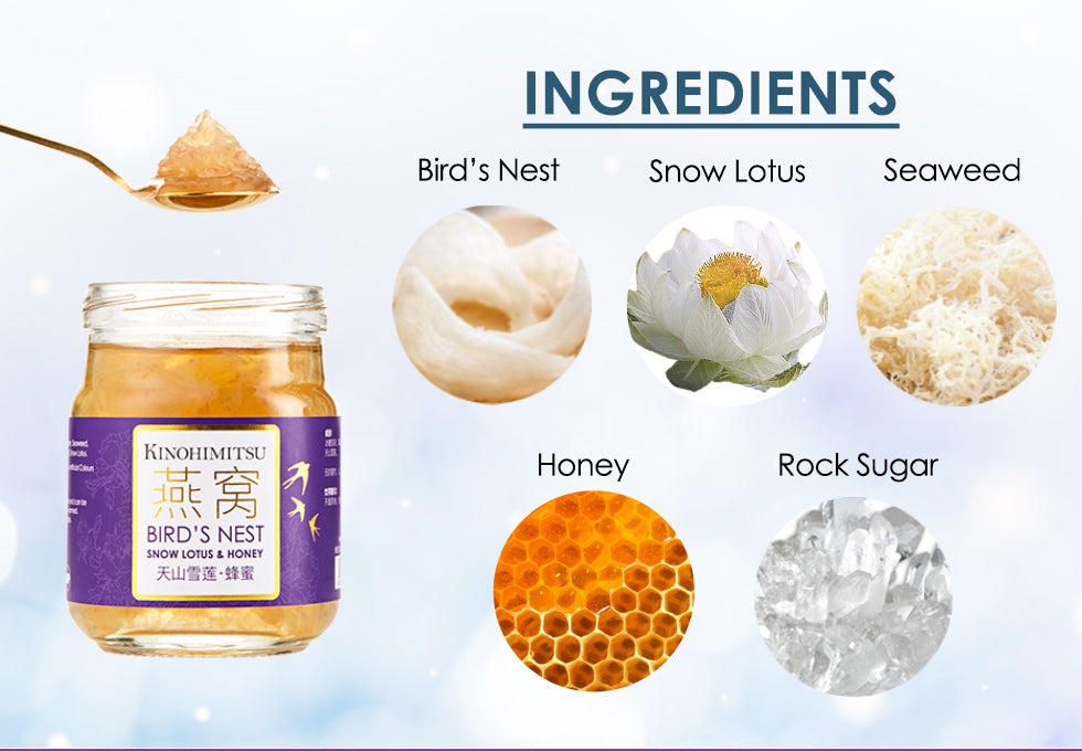 THÀNH PHẦN VÀ CÔNG DỤNG CỦA NƯỚC YẾN THƯỢNG HẠNG KINOHIMITSU BIRD’S NEST WITH SNOW LOTUS & HONEY