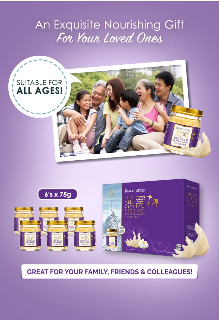 KINOHIMITSU BIRD’S NEST WITH SNOW LOTUS & HONEY / NƯỚC YẾN THƯỢNG HẠNG CHỐNG LÃO HÓA, TRƯƠNG THỌ