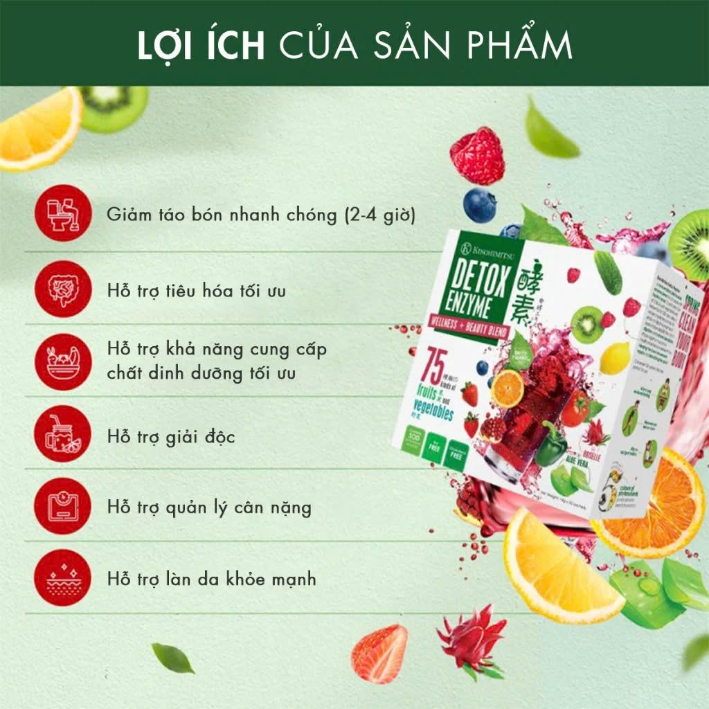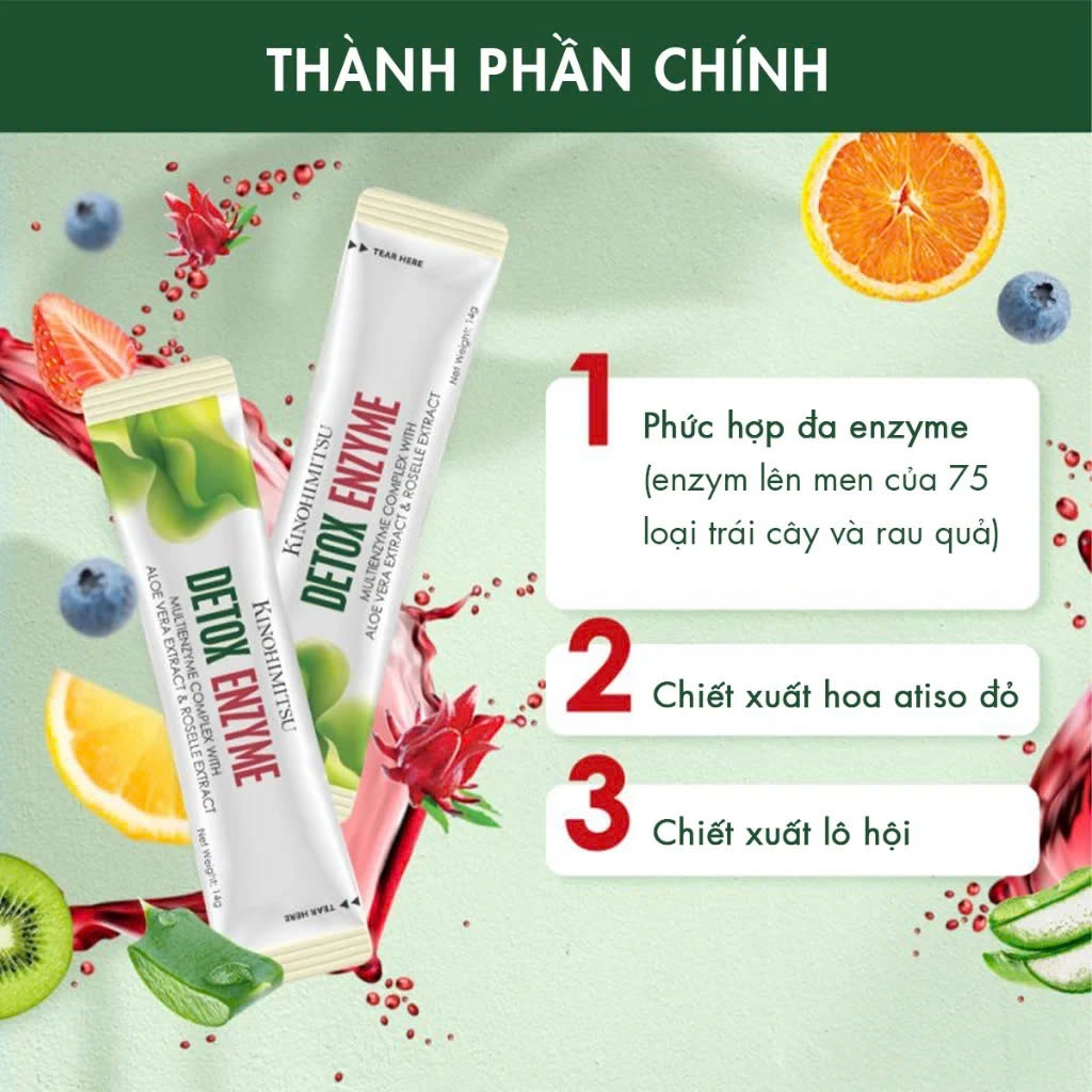 THÀNH PHẦN VÀ CÔNG DỤNG CỦA BỘT UỐNG THẢI ĐỘC, KIỂM SOÁT CÂN NẶNG KINOHIMITSU DETOX ENZYME