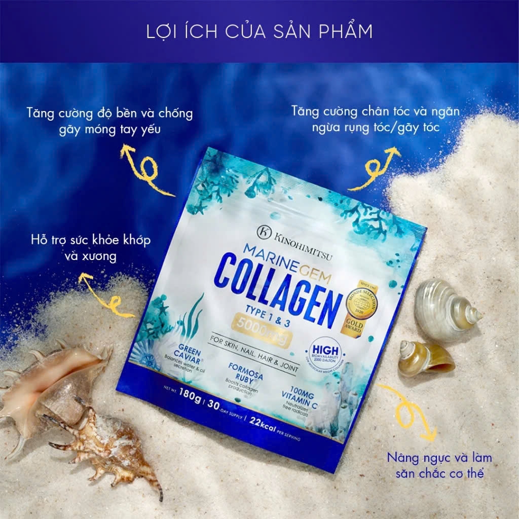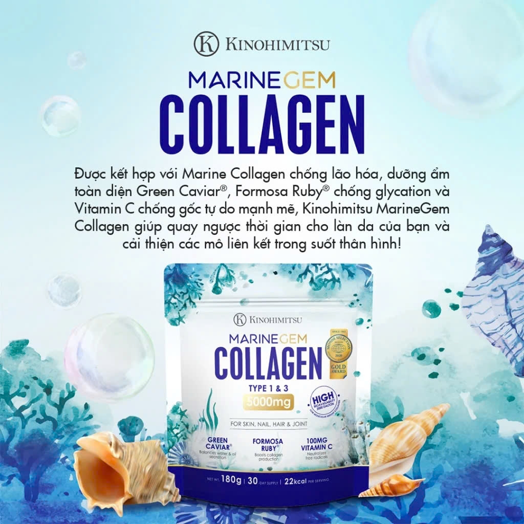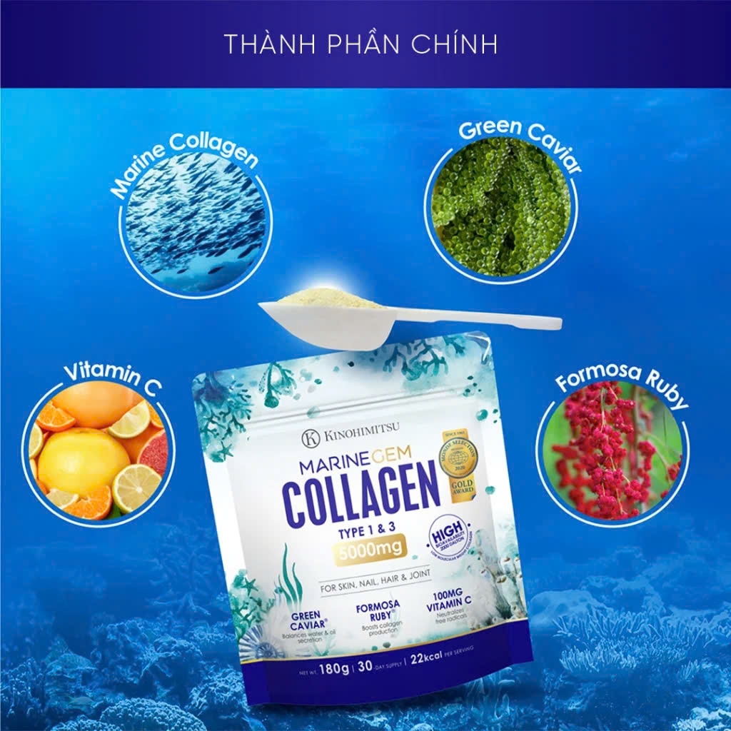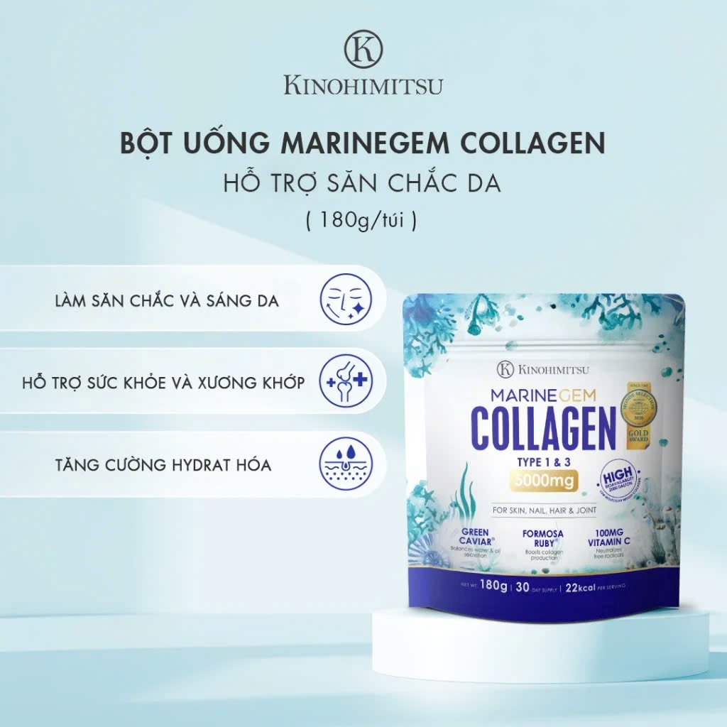 KINOHIMITSU MARINEGEM COLLAGEN 180G / BỘT UỐNG COLLAGEN KHỎE DA TÓC MÓNG, XƯƠNG KHỚP