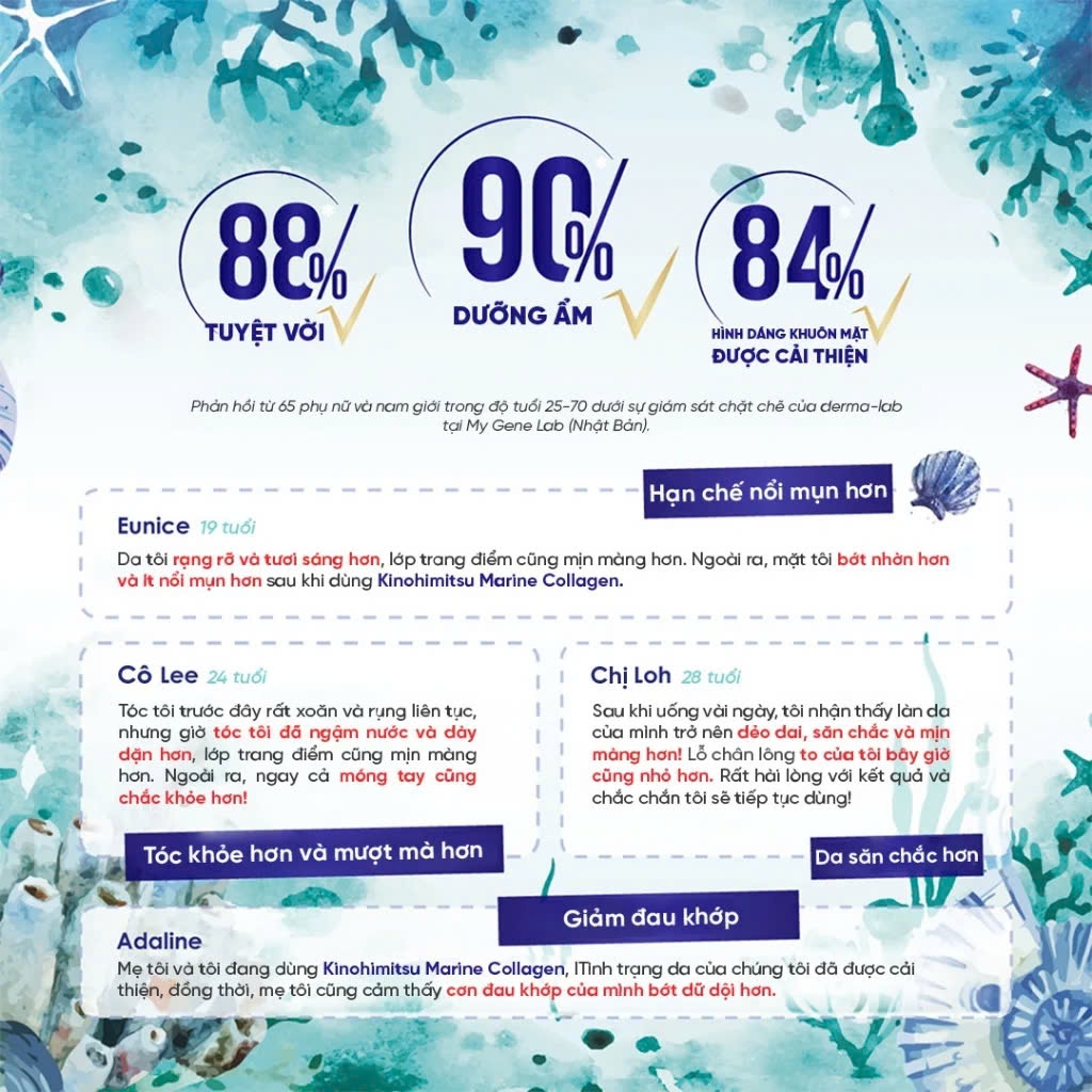 CHỈ ĐỊNH CỦA BỘT UỐNG COLLAGEN KINOHIMITSU MARINEGEM COLLAGEN 180G