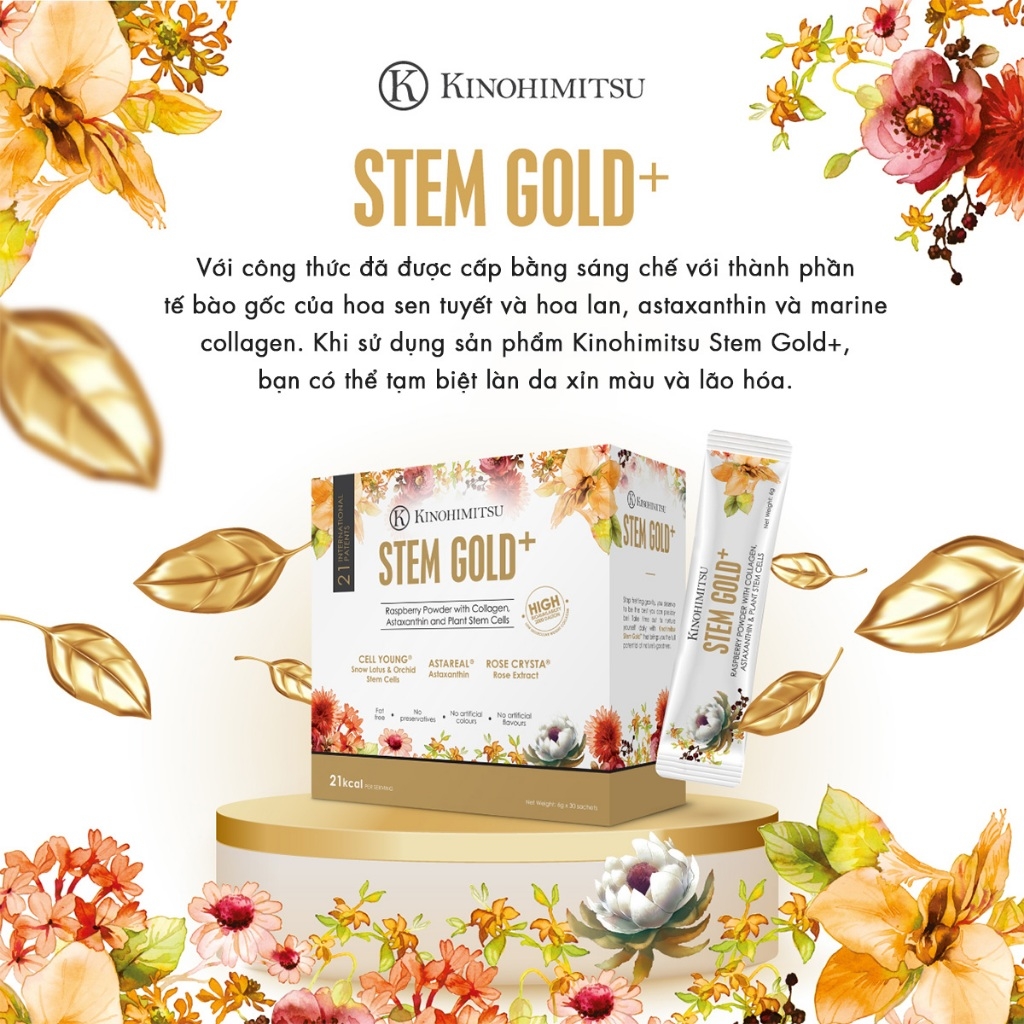 Tuổi tác là kẻ thù của nhan sắc và sức khỏe. Bạn có muốn "đảo ngược" thời gian, níu giữ nét thanh xuân rạng rỡ? KINOHIMITSU STEM GOLD 6G - bí quyết trẻ hóa toàn diện từ Nhật Bản sẽ giúp bạn! Với công thức độc quyền kết hợp tế bào gốc thực vật và các tinh chất quý giá, sản phẩm mang đến hiệu quả vượt trội trong việc tái tạo tế bào, chống lão hóa, cho bạn làn da căng mịn, cơ thể khỏe mạnh, tràn đầy năng lượng.