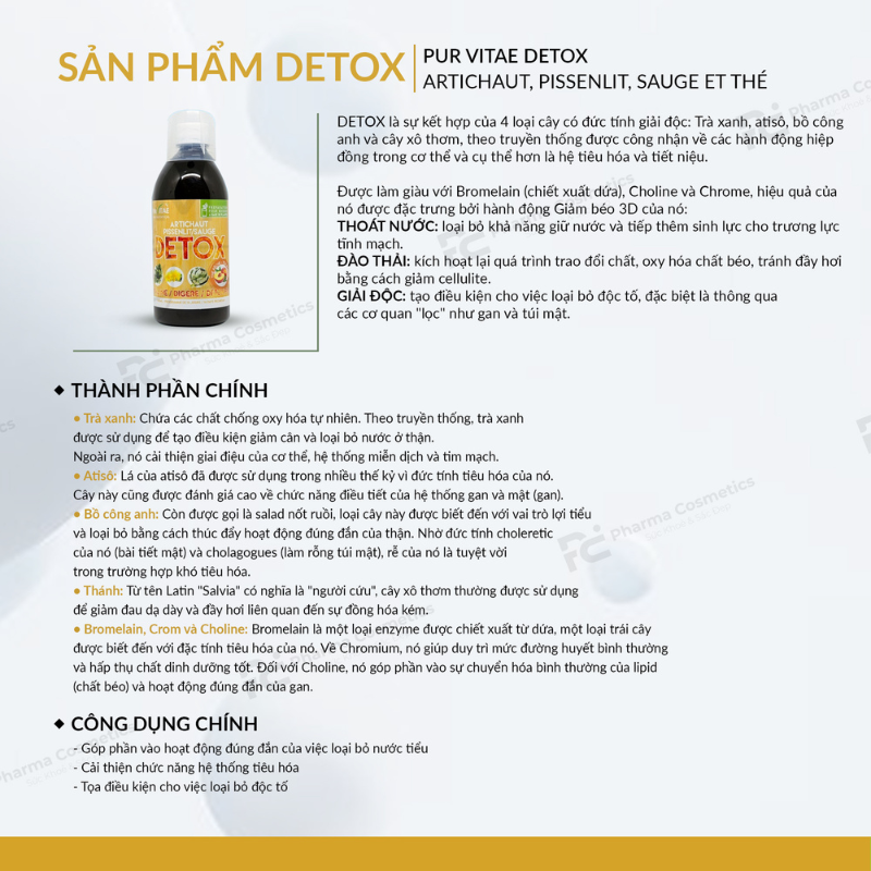 Chi tiết sản phẩm: https://pharmacosmetics-vn.com/pur-vitae-detox-artichaut-pissenlit-sauge-et-the-nuoc-uong-thoat-nuoc-giai-doc-va-dao-thai-cho-co-the