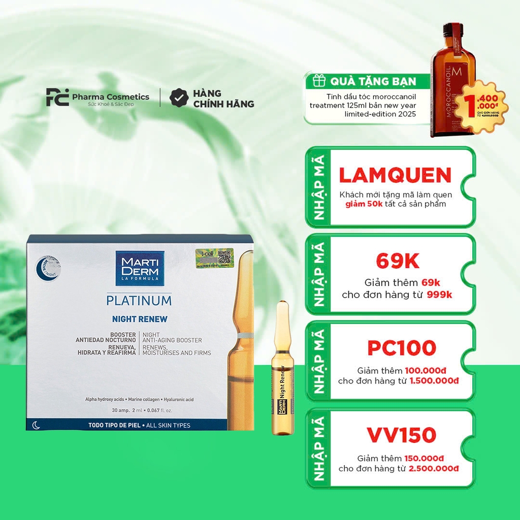 AMPOULE CHỐNG LÕA HÓA & TÁI TẠO DA BAN ĐÊM MARTIDERM PLATINUM NIGHT RENEW AMPOULE