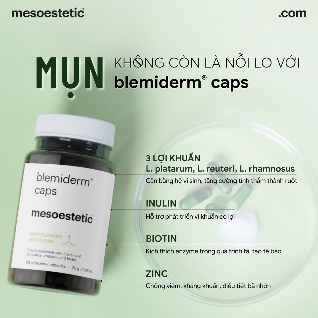 THÀNH PHẦN VÀ CÔNG DỤNG CỦA VIÊN NANG HỖ TRỢ ĐIỀU TRỊ MỤN MESOESTETICS BLEMIDERM CAPS