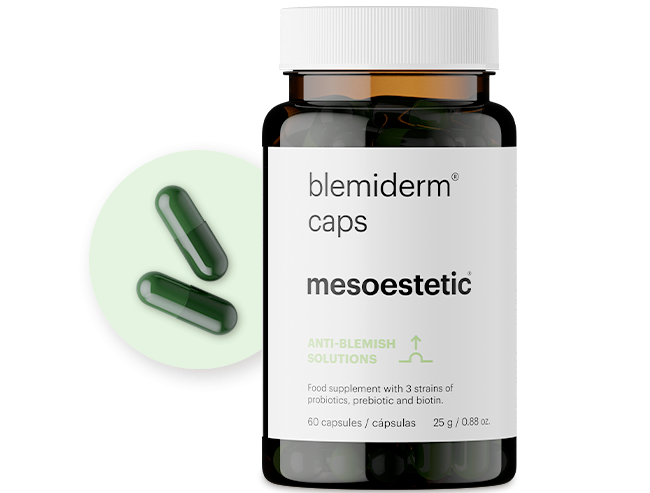 Mesoestetic blemiderm® caps là viên uống bổ sung các thành phần có lợi cho hệ vi sinh của da như Biotin và Zn (Kẽm) với liều lượng phù hợp, được thiết kế đặc biệt cho những người gặp vấn đề về mụn, làn da không khỏe mạnh.