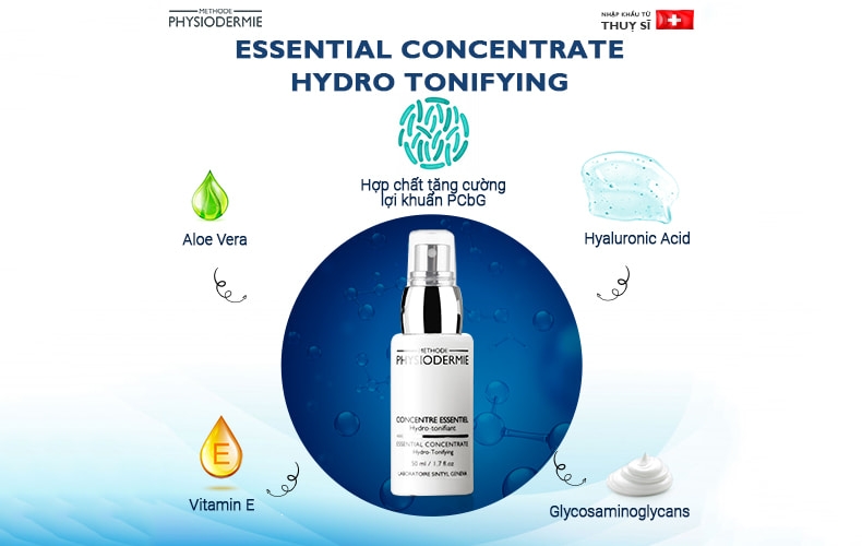 Đây là tinh chất dưỡng ẩm dạng xịt, thuộc dòng sản phẩm Essential Concentrate của thương hiệu dược mỹ phẩm Methode Physiodermie (Thụy Sĩ). Sản phẩm được đặc chế với công thức giàu dưỡng chất, giúp cấp ẩm sâu, kích thích sản sinh collagen và elastin, cải thiện kết cấu da, mang lại làn da khỏe mạnh, căng tràn sức sống.