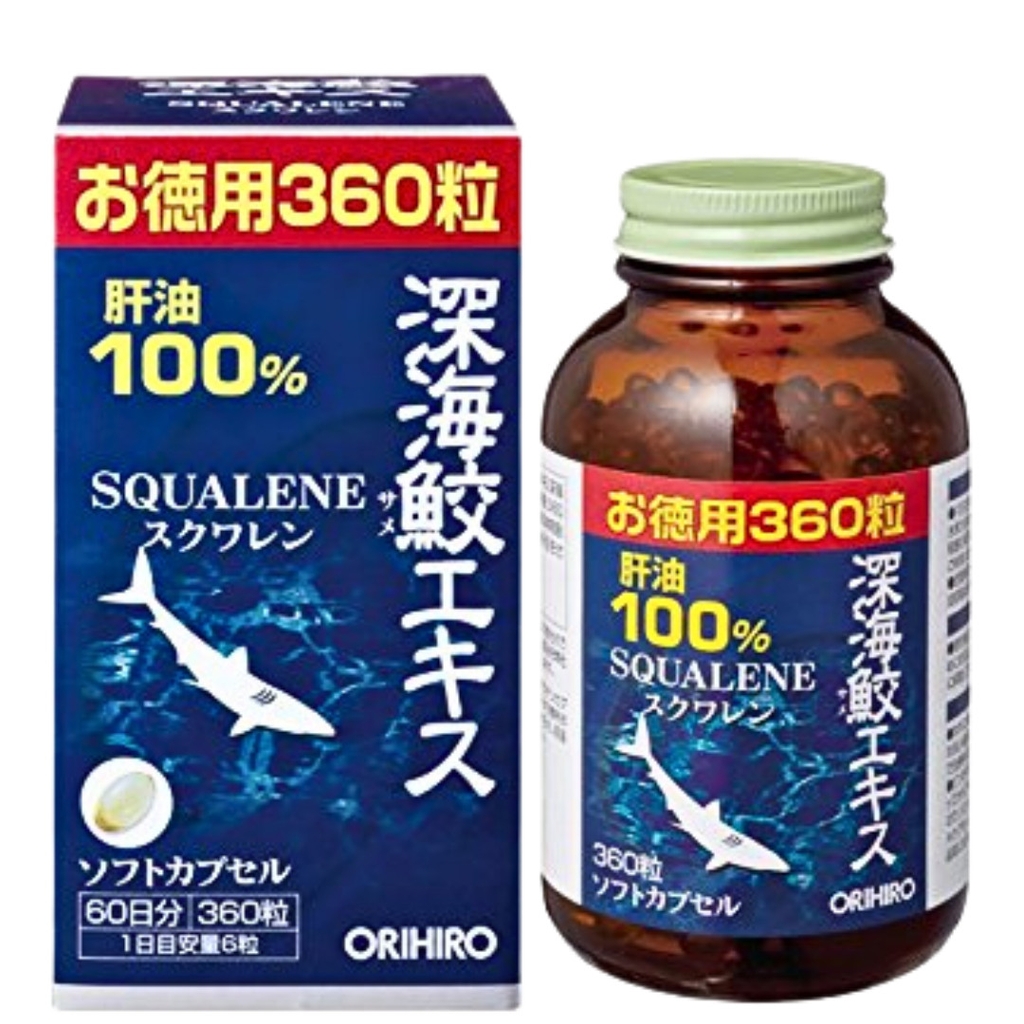 \nSqualene có công dụng chính là bôi trơn, do đó viên uống Orihiro Deep Sea Shark Extract Squalene 360 capsules sẽ hỗ trợ chống khô mắt, mỏi mắt, giảm thị lực. Sản phẩm phù hợp với những người có tật khúc xạ (cận thị, nhược thị,…), người làm việc văn phòng sử dụng máy tính nhiều. Đồng thời các axit béo dầu cá omega-3 trong dầu gan cá mập có vai trò quan trọng trong phát triển thị lực và duy trì đôi mắt khỏe mạnh. Các axit béo omega-3 này giúp cung cấp dinh dưỡng và hỗ trợ làm giảm nguy cơ mắc các bệnh về mắt như thoái hóa điểm vàng.