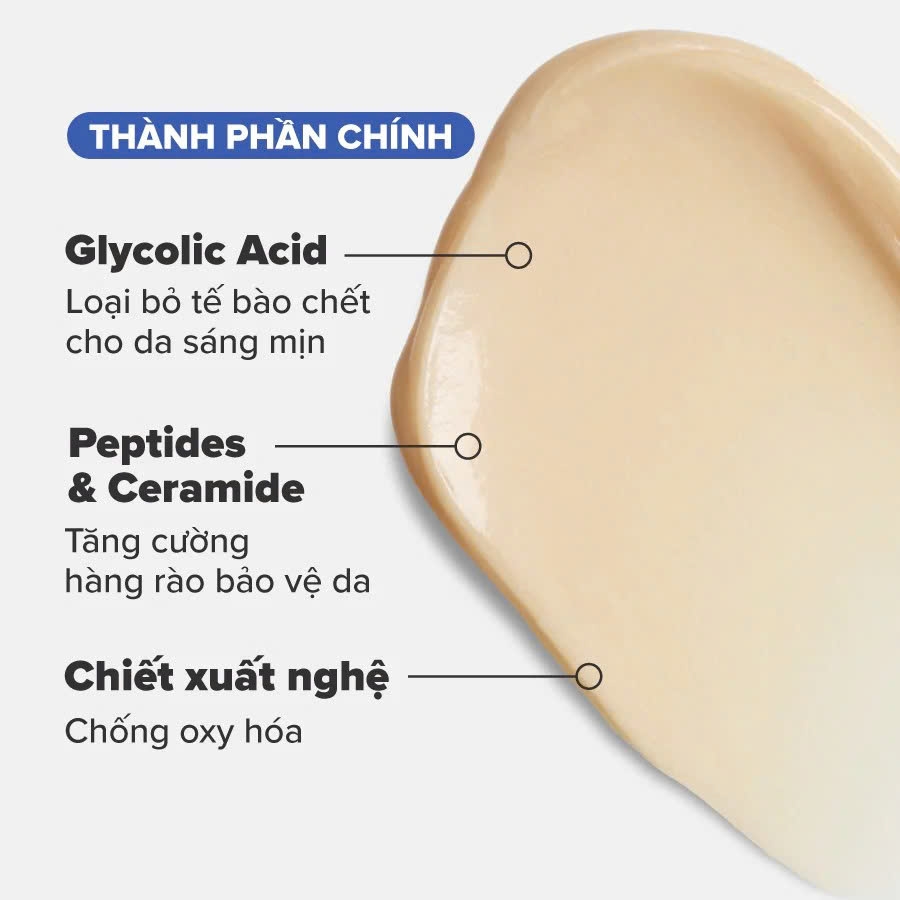 Loại Bỏ Tế Bào Chết Dịu Nhẹ & Hiệu Quả: Với 5% Glycolic Acid, sản phẩm nhẹ nhàng làm sạch lớp sừng già cỗi, thúc đẩy quá trình đổi mới tế bào, giúp da sáng mịn và đều màu.